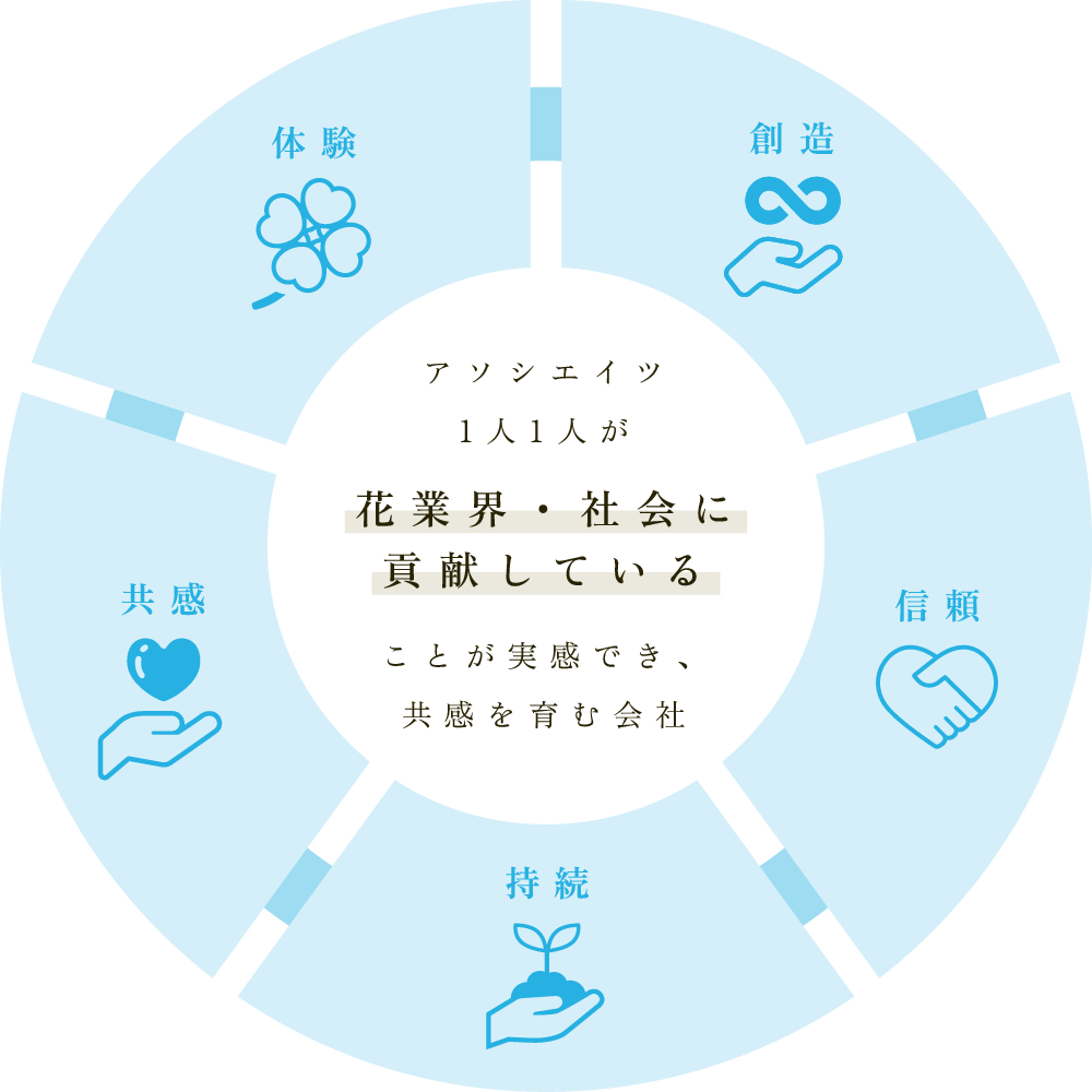 共感 花・みどりを通じて、社会や人々との共感を作り出し、アソシエイツもそれを実感