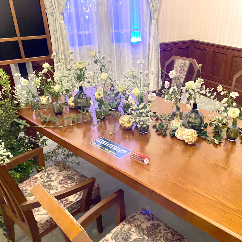 福岡県産のギンバイカを使用し、貴賓館の一室「談話室」を使用させていただき「ギンバイカ」装飾ディスプレイも担当。 ![]() ![]() ![]() |