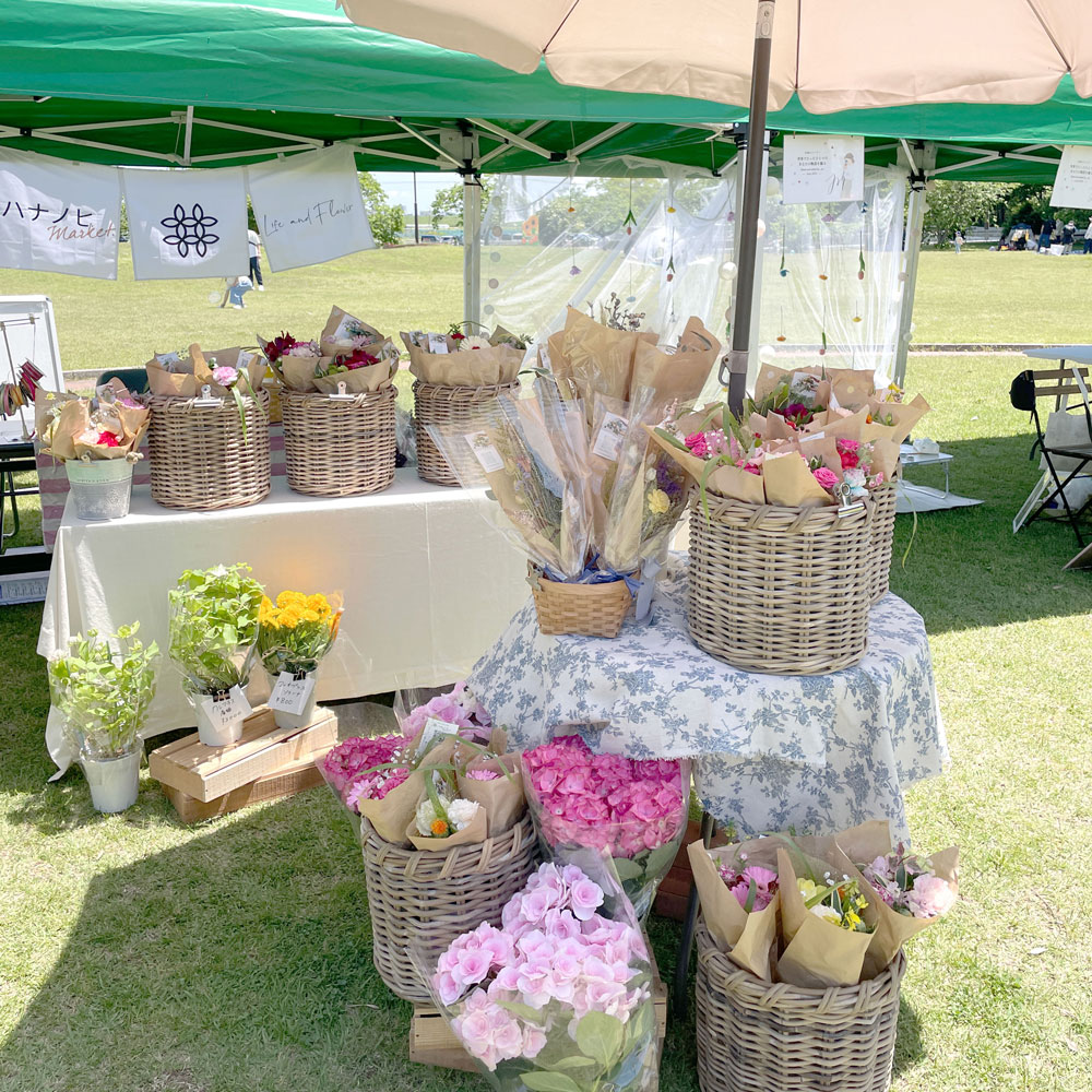 客様にお求めやすいカジュアルな価格帯で購入いただける場としてマルシェを活用し、市場調査や、実際に店頭に立つことで、よりリアルなお客様の反応を体感し、ご意見もいただけました。花好きの方も非常に多く盛況でした。 ![]() ![]() ![]() 2025年5月10日、11日 千葉県柏市あけぼの山農業公園にて『ハナノヒマーケットPOPUPストア』実施。