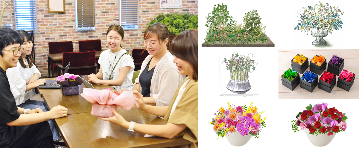(株)日比谷花壇のギフト商品企画・商品制作を担っており、多岐に渡るノウハウの下、高付加価値商品からカジュアル商品、自家消費商品までご提供しております。